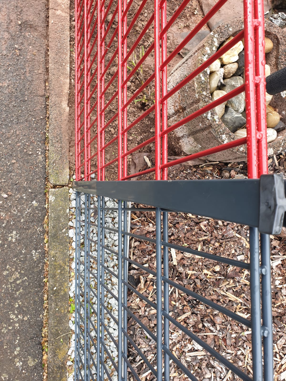 DSM in anthrazit mittels Kernbohrung auf die Mauer gesetzt und der Schräge angepasst.